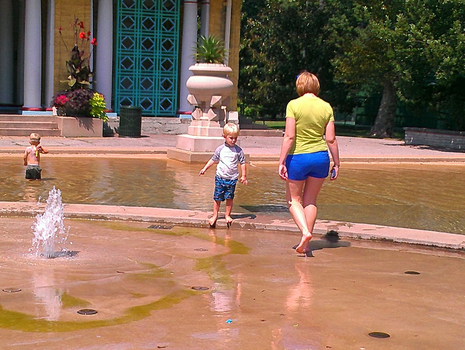Before some lunch and heading back to Jeffs dads we went to the park near our friends house. This was so cool and the boys just loved it. It was fountain with about a 1 foot wading pool. They splashed around and had a blast.